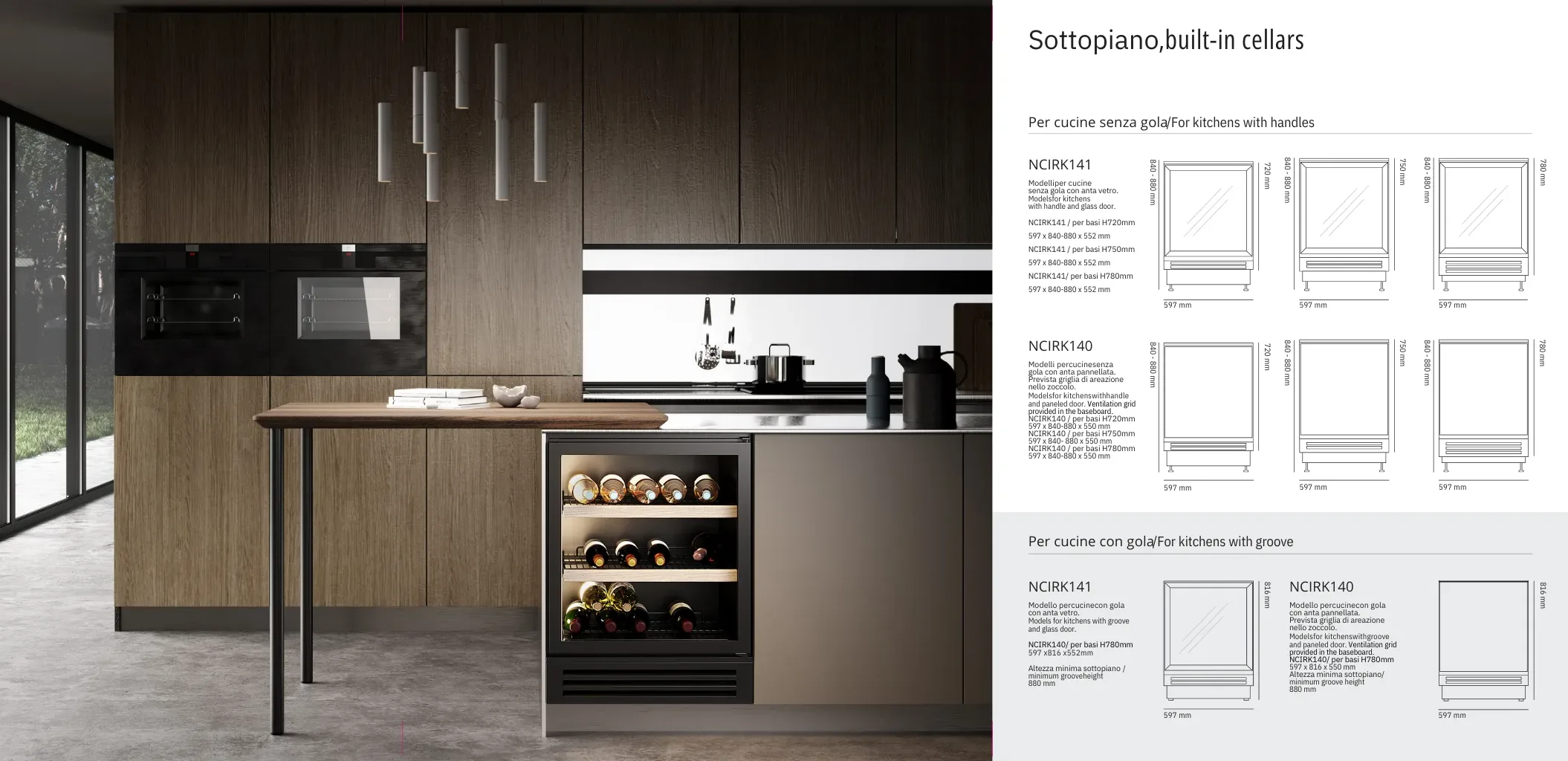 Scopri il modello Cantinette Sottopiano, disponibile per cucine sia senza gola che con gola, con ante in vetro o ante pannellate. Perfetto per chi cerca eleganza e funzionalità in ogni dettaglio della cucina.